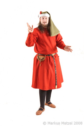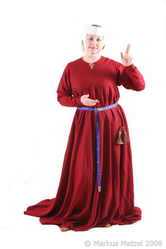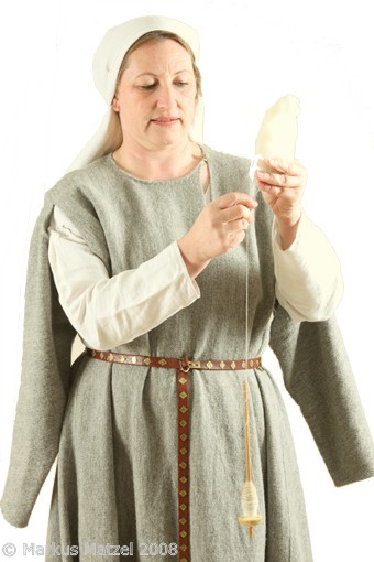 Alle Kleidungsstücke wurden aus 100% Naturstoffen (Wolle, Leinen und Seide) hergestellt. Die Stoffe wurden archäologischen Funden entsprechend sorgfältig ausgesucht und verarbeitet. Nur so ließ sich ein Aussehen erreichen, das an die zeitgenössischen Vorbilder heranreicht. |