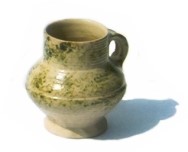 LangerweheLangerwehe liegt etwa 20 km östlich von Aachen an einer alten Fernhandelsstraße, die seit dem hohen Mittelalter von Frankfurt am Main über Aachen nach Antwerpen und Brügge führte. Seine Bedeutung erlangte der Ort allein durch die Keramikproduktion, die dank guter Tonvorkommen und der günstigen Verkehrslage schnell überregional gehandelt wurde. Im 12. Jh. wurde im Bereich von Langerwehe graue Irdenware und rotbemalte gelbe hergestellt. Die Hauptproduktionszeit begann jedoch erst im späten 13. Jh., als steinzeugfähige Tonvorkommen erschlossen wurden. In den folgenden vier Jahrhunderten wurden dann in großen Mengen vor allem Krüge und Becher aus Steinzeug hergestellt. Oftmals ist der Scherben nicht vollkommen durchgesintert. Die Qualität der Langerweher Stücke blieb deshalb hinter den Siegburgern zurück. Die Produktionspalette umfaßte vor allem Trink- und Schenk-, sowie Vorratsgefäße in schlichten, funktionalen Formen.